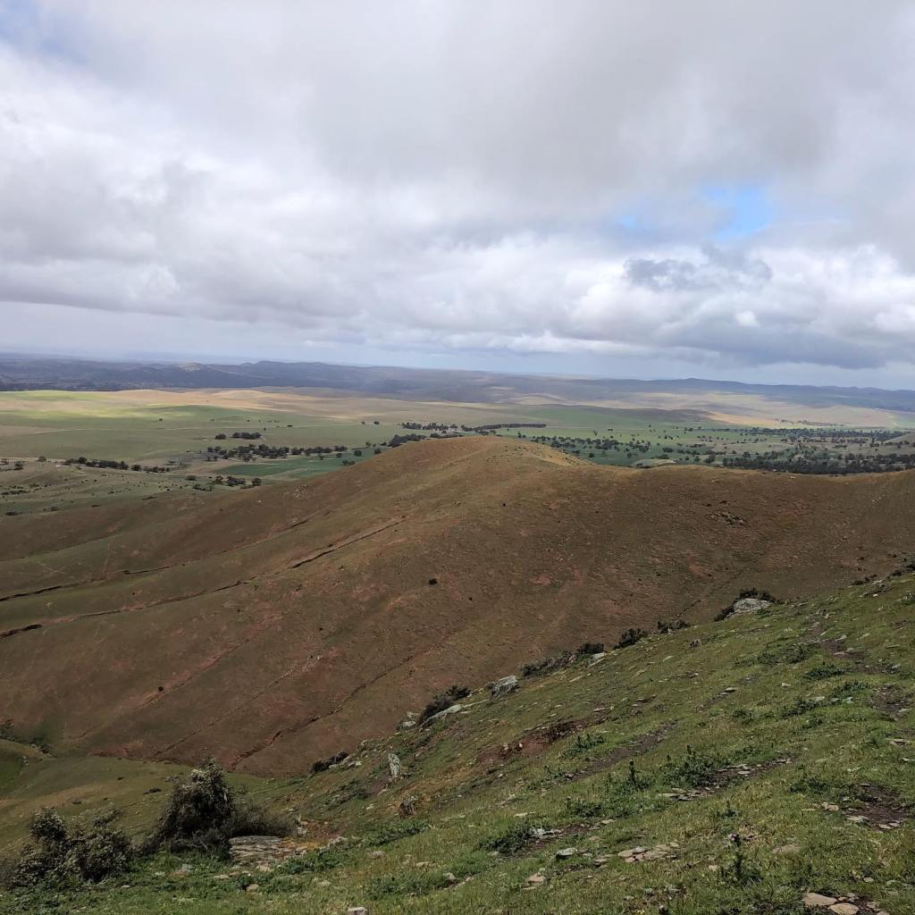 After an extremely cold night (down to 0 degrees Celsius), the day dawned cold but clear for the second day of trail running this trip. So it was back to Dust Hole Creek Road to tackle a section heading west toward Hallett and Spalding. This would involve traversing Mt Bryan (elevation 929m above sea level). Starting at around 500m ASL, the first 5 or so kilometers was a long gradual climb of easy running along an unsealed road before a right hand turn onto the trail for the start of the climb up Mt Bryan.